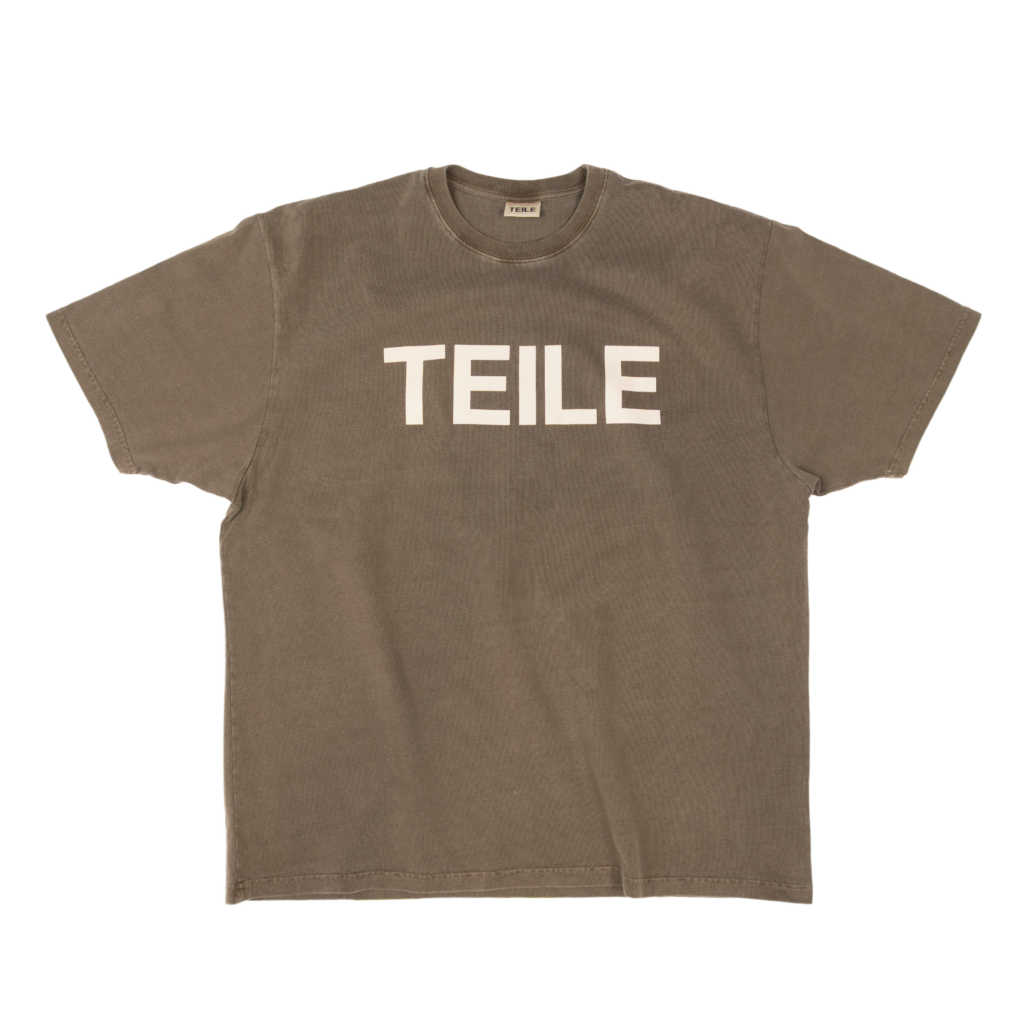 The new TEILE T-Shirt in a washed out light brown finish with off-white print.